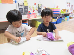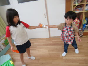 こひつじグループでは、やきいも作りから取り組み、やきいも屋さんごっこをしました!!